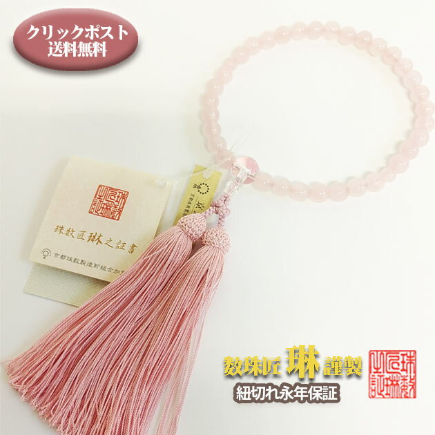 数珠 女性用 京念珠 水晶 ローズクォーツ 銀...