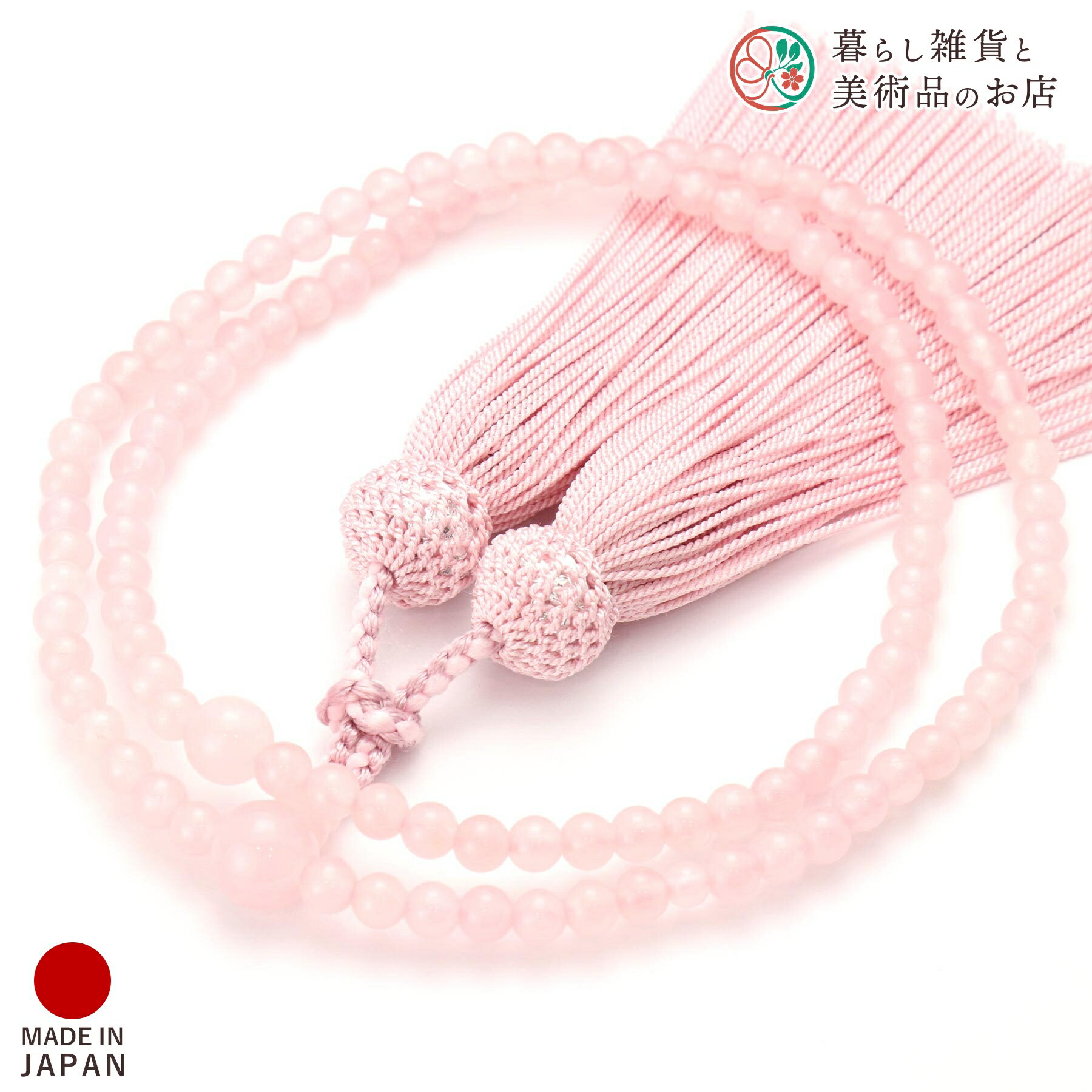 女性用高級数珠 「ローズクォーツ 共仕立て ...
