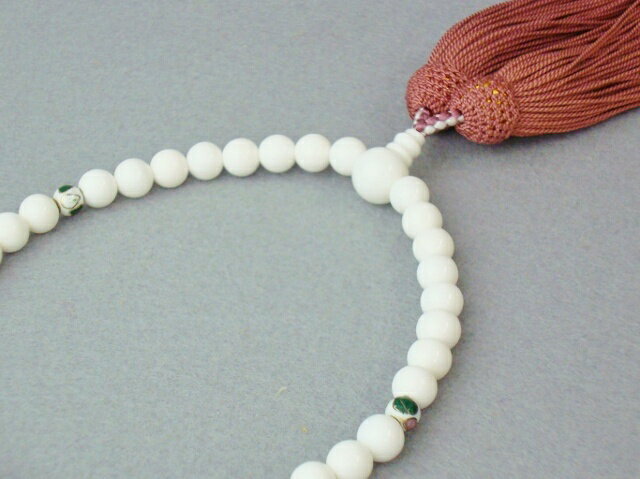数珠 女性用 シャコ貝 七宝焼白 二天 7ミリ玉...