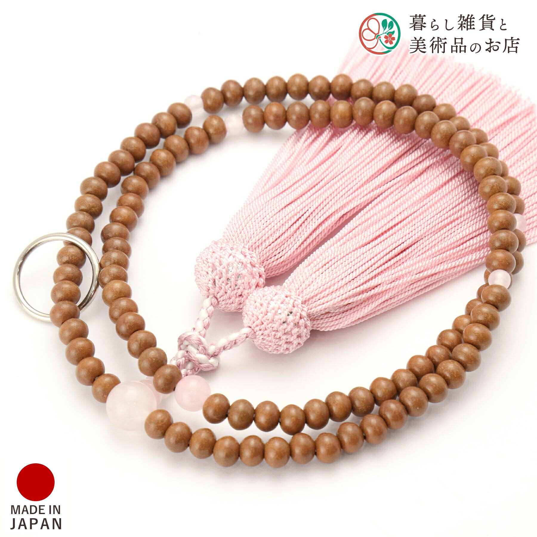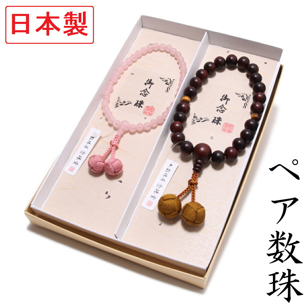 ペア数珠 日本製 紫檀 ローズクォーツ 数珠...