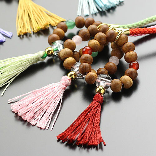 八宗派兼用 数珠 女性用 8寸 紅桜 ローズクォ...