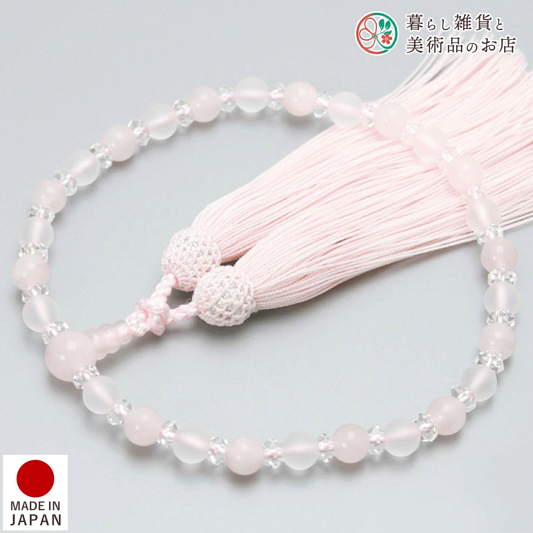 数珠 女性用 京念珠 淡雪水晶 ローズクォー...