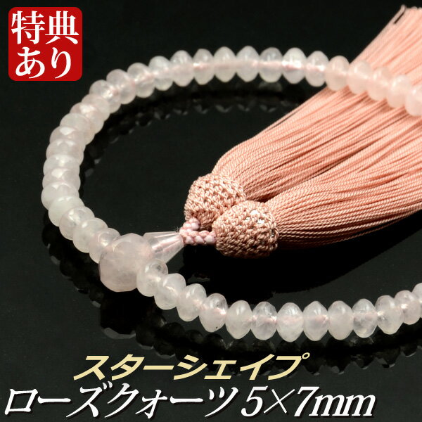 数珠 念珠 ローズクォーツ共仕立 5×7mm珠 ス...