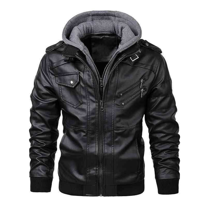 ジャケット 男性用 PUレザー ブルゾン フード...