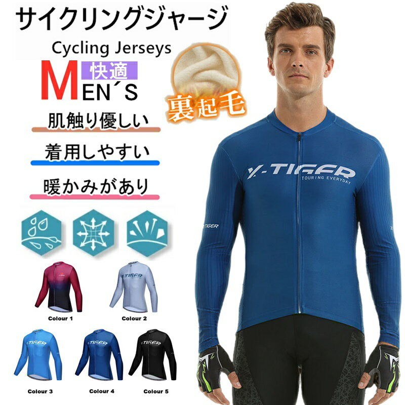 サイクルジャージ秋冬用長袖 裏起毛男性用...