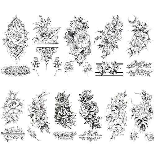 Glaryyears Flower Temporary Tattoos for Women, 11-Pack Henna...
