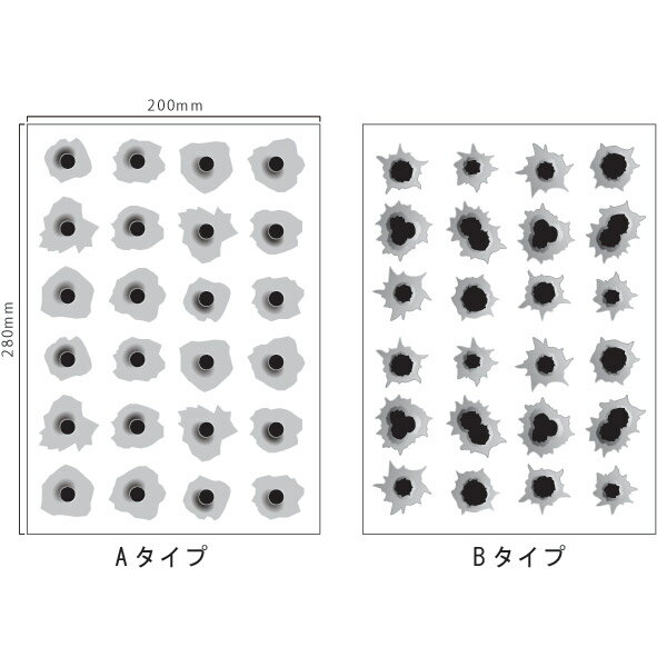 銃弾痕デザイン ステッカー 1セット24種類 20c...