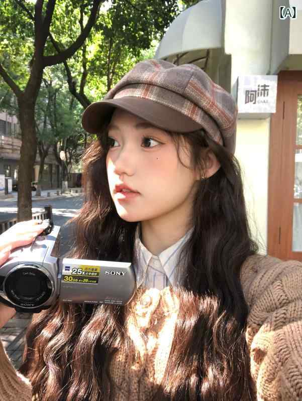 帽子 チェック柄 レトロ ウール 八角形 ハッ...