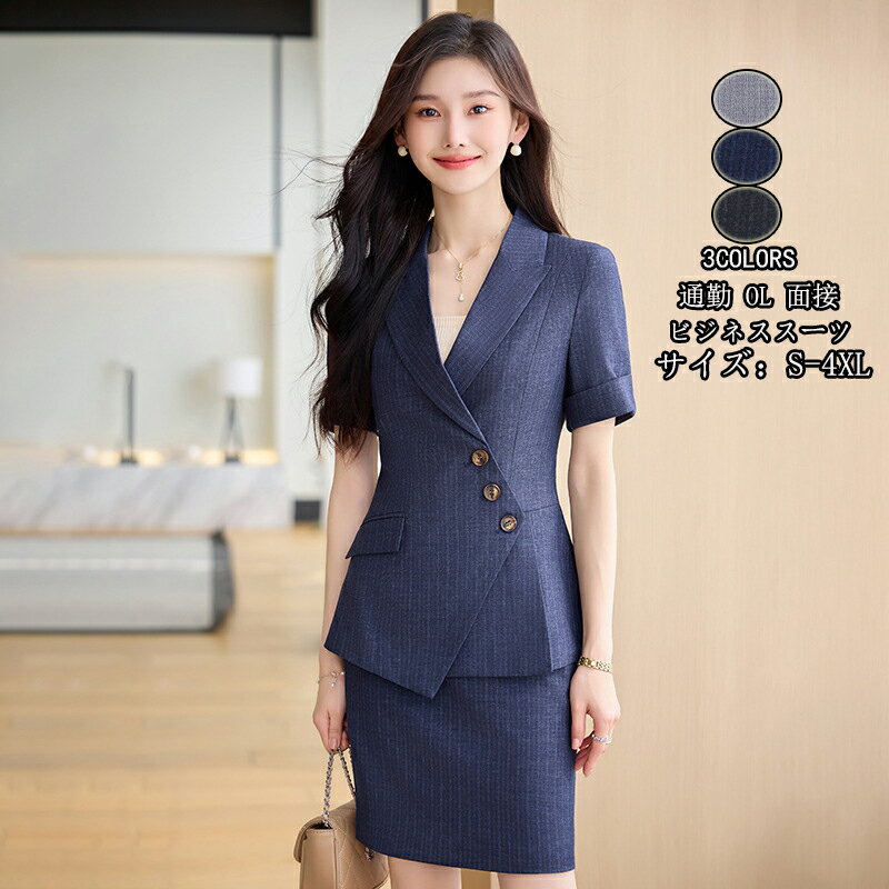 送料無料 女性スーツ2点セット半袖上着+スカ...
