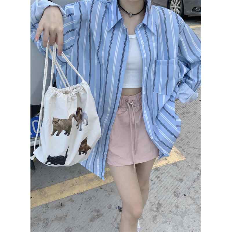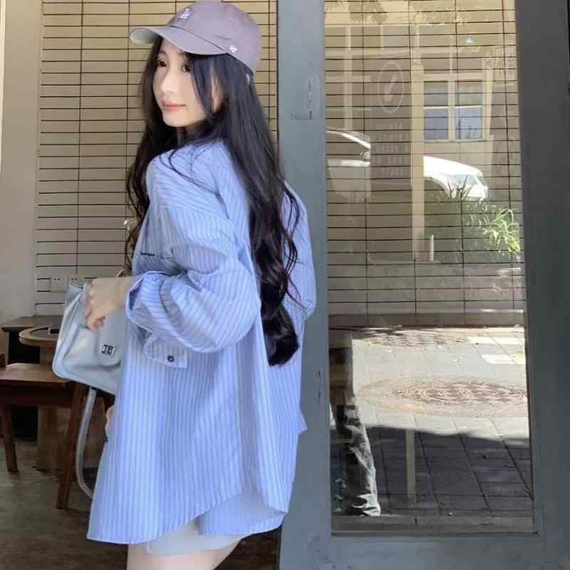 シャツ レディース ブルー ストライプ 刺繡 ...