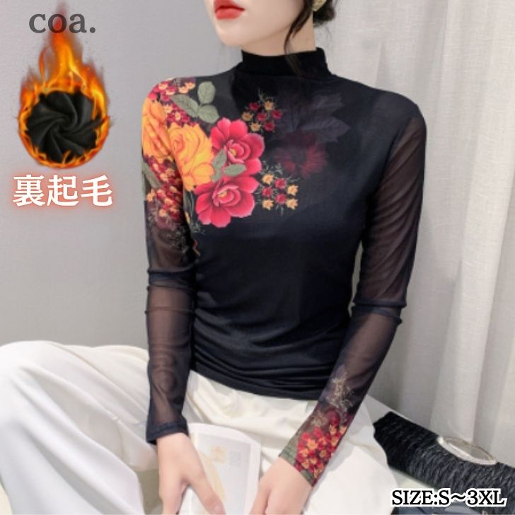 裏起毛 シャツ Tシャツ ロンT プリント 花柄 ...