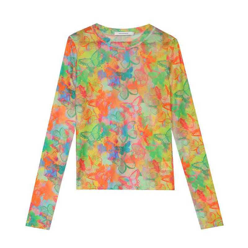 長袖 薄手 レディース メッシュ 柄 蝶 カラフ...