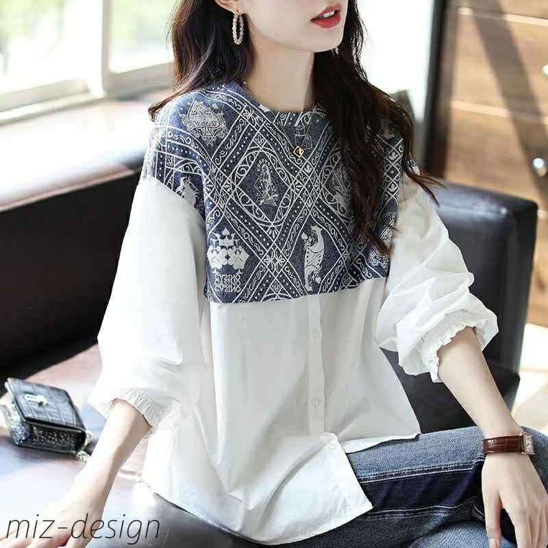 シャツ レディース 長袖 丸首 プルオーバー ...