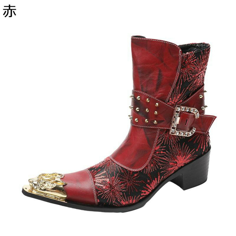 メンズ チェルシーブーツ 花火柄 刺繍 アン...