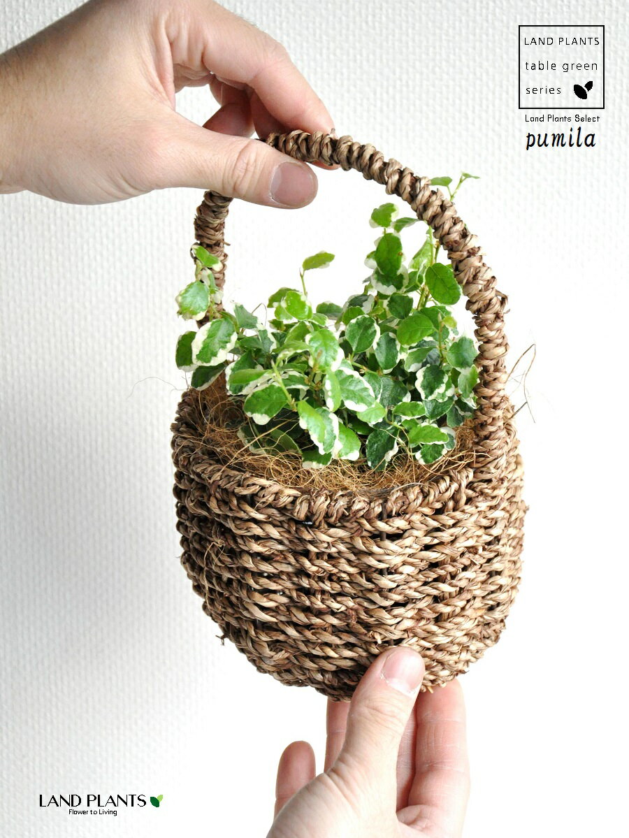 プミラ(斑入り) 可愛い 取っ手付き バスケ...