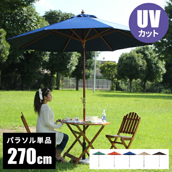 木製 パラソル/日よけ 【アイボリー】 幅270cm...