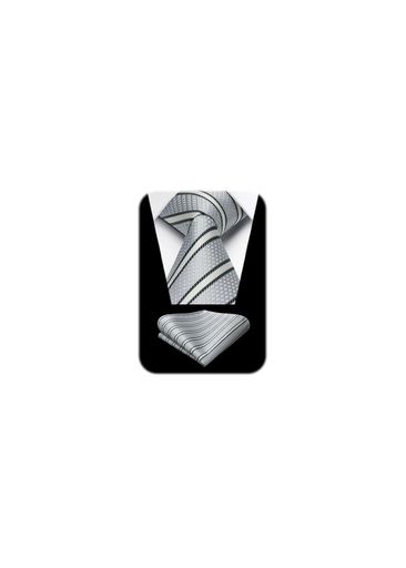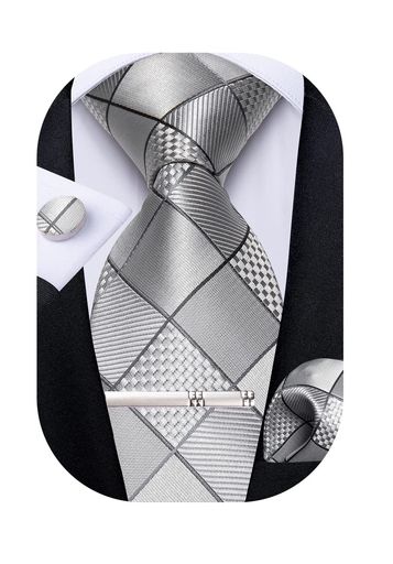 [DiBanGu]シルバー格子ネクタイ結婚式ハンカチ...