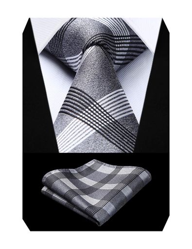 S1SHLAX&WINGチェックグレーメンズ長細いネクタ...