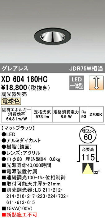 オーデリック XD604160HC LEDグレアレスベースダ...