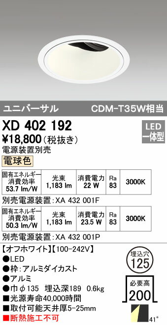 オーデリック ODELIC XD402192 LEDダウンライト 本...