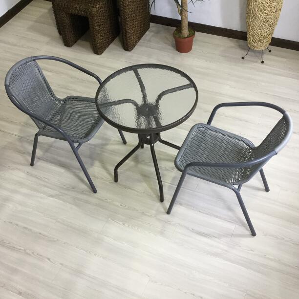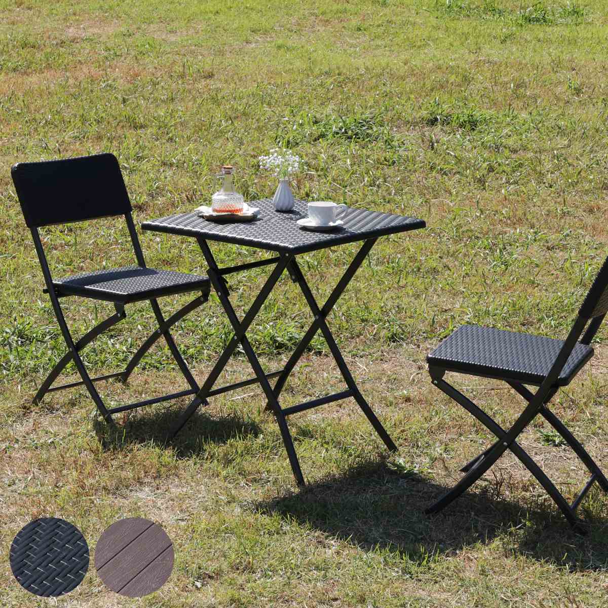 ガーデン テーブル 3点 セット ラタン調 ガラ...