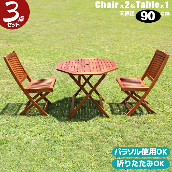 ガーデンテーブル ガーデン3点セット 木製 ...