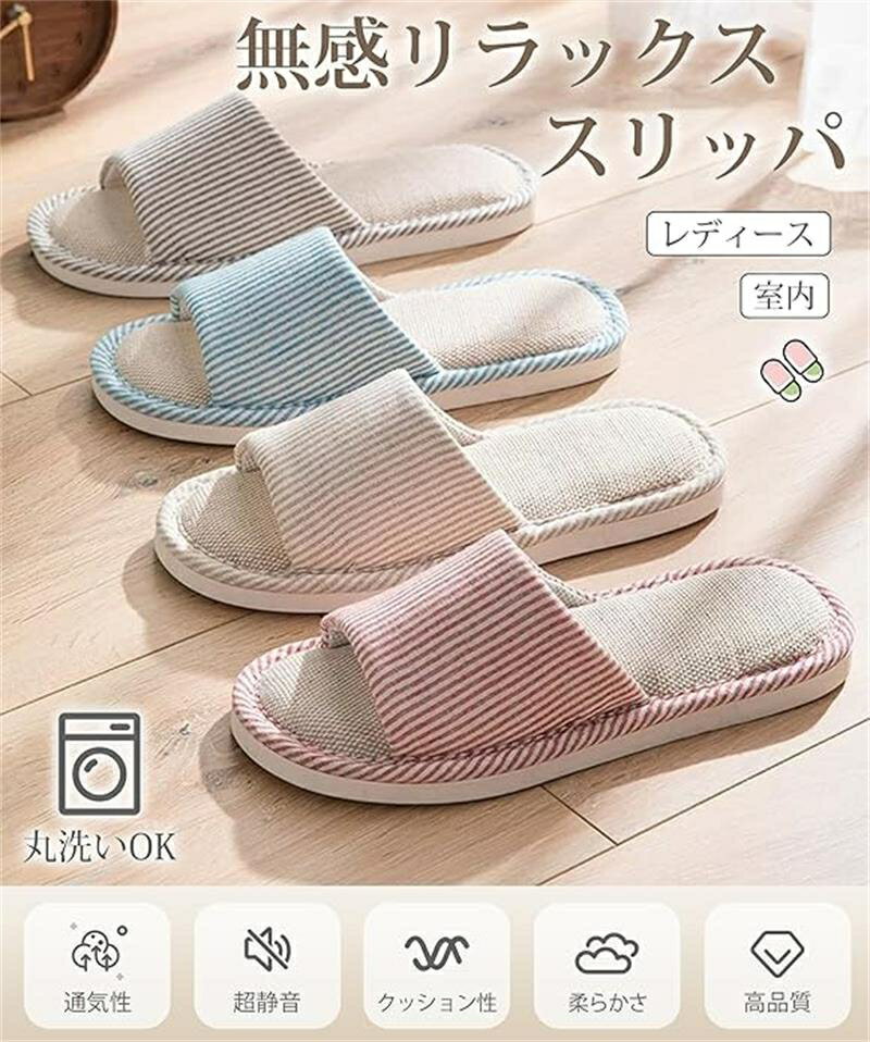 送料無料 室内 ルームシューズ 夏用 リネン...