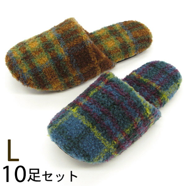クリンプボア タータン ソフト スリッパ 暖 L...