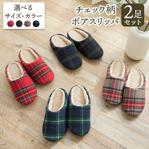 【ふるさと納税】チェック 柄 ボア スリッパ...