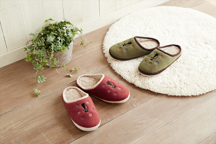 あったか小音スリッパ にゃんこ刺繍 2色組み...