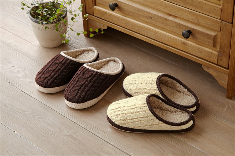 アラン編みあったか小音スリッパ 2色組み(代...