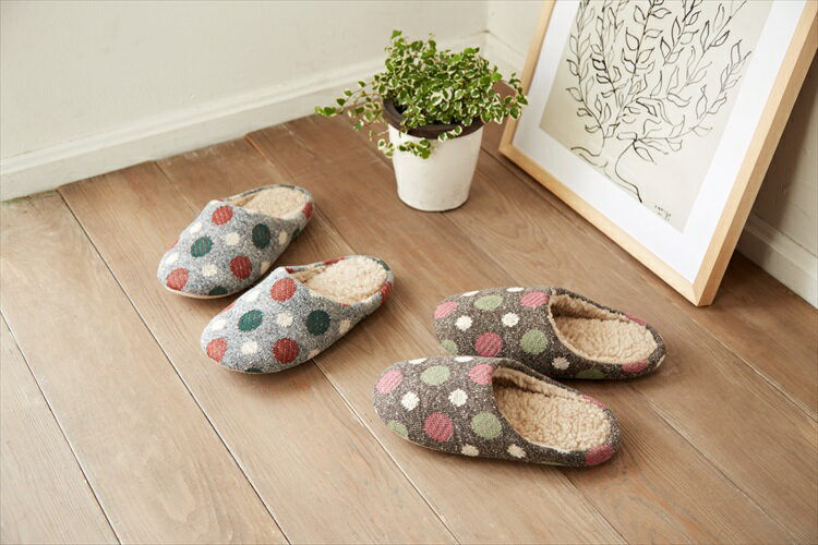 ニット編みあったか小音スリッパ 水玉 2色組...