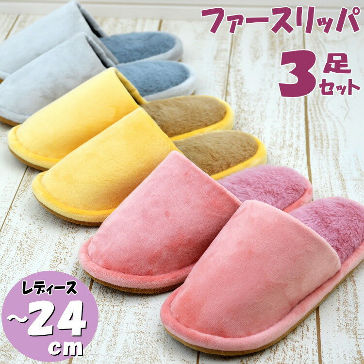 スリッパ 3足セット 洗える ほっこりファー...