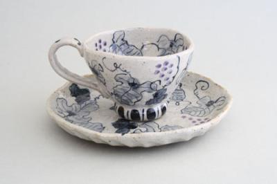 日本製 染ぶどう コーヒー碗皿(紫)陶器 カ...