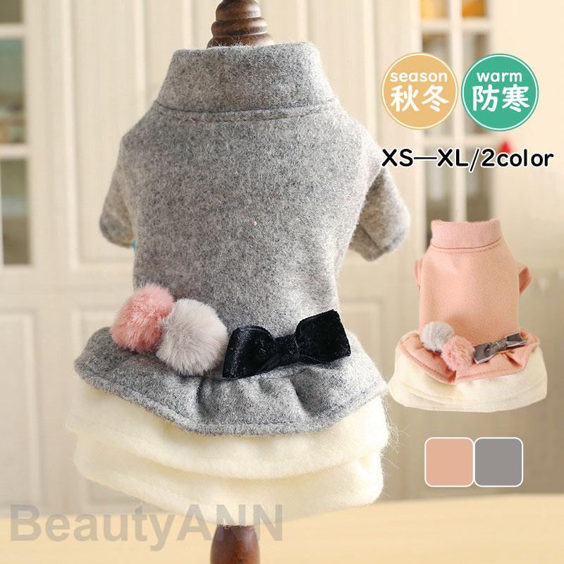 ペットウェア 犬服 秋 冬 ワンピース 保温 防...