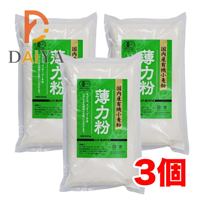 ムソー 国産有機小麦・薄力粉500g ×3個