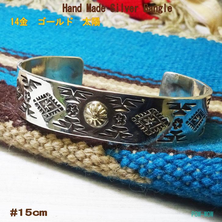 18金 太陽 ラグ模様 バングル スタンプワーク...