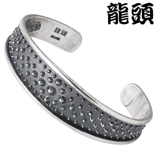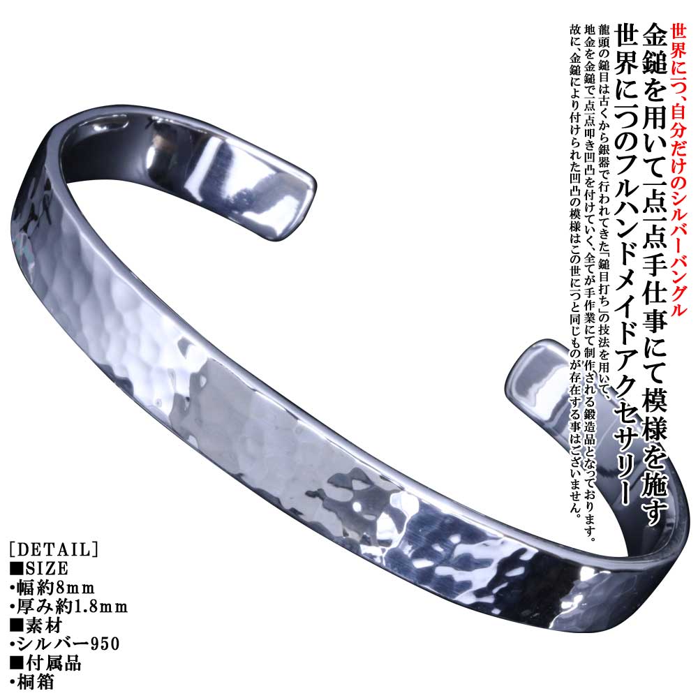 バングル メンズ 龍頭 丸 鎚目 槌目 シルバー...
