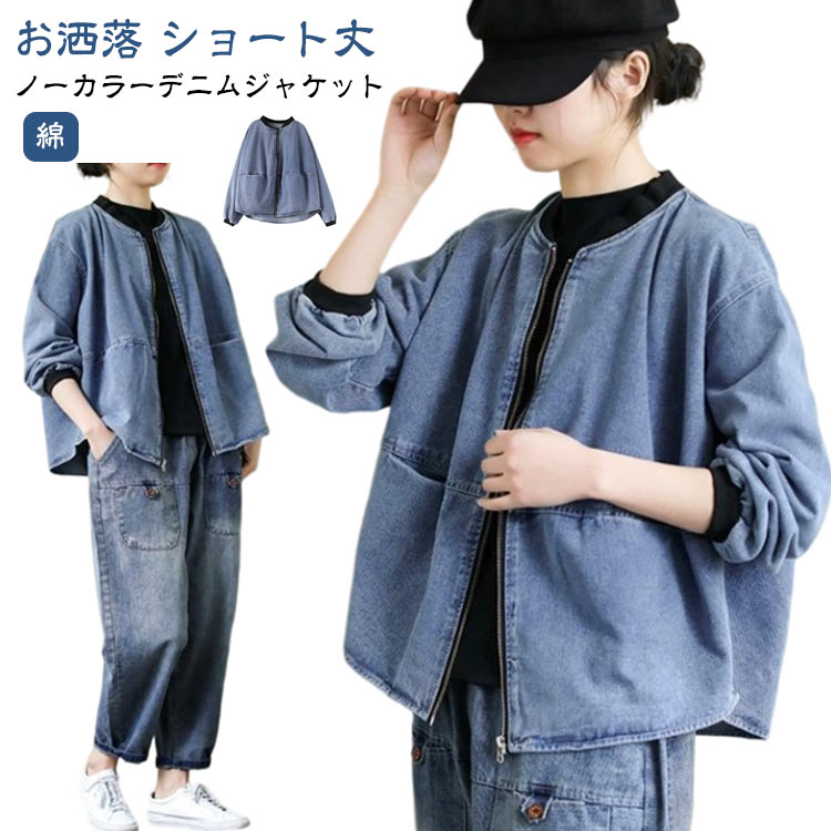アウター デニム カジュアル ノーカラージャ...