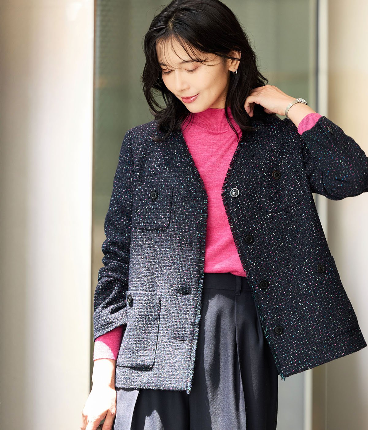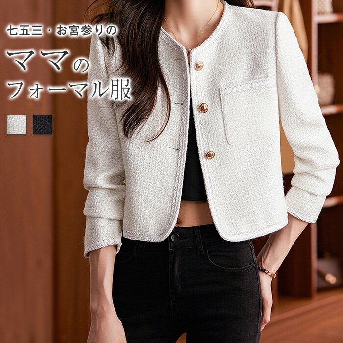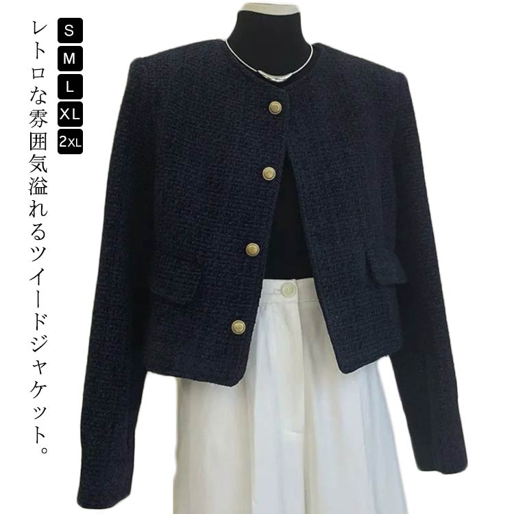 ツイードジャケット ノーカラージャケット ...