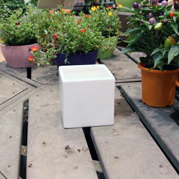 陶器鉢 植木鉢 ホワイトポット角型 Mサイズ ...