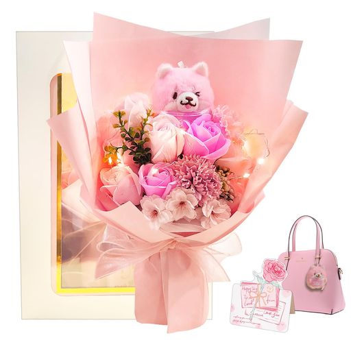 光るLEDライト付きソープフラワー花束カーネ...