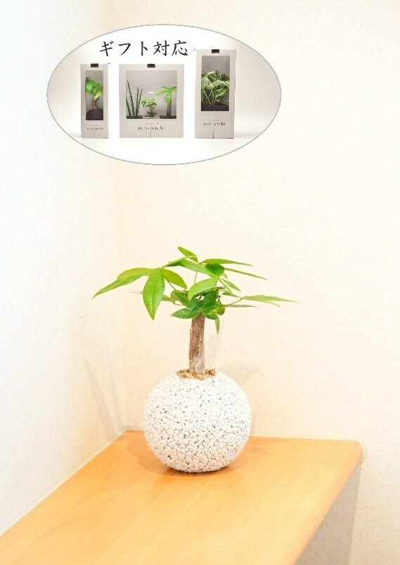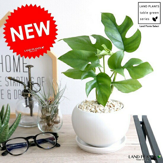 ヒメモンステラ 白色 丸形 陶器鉢(黄色小石...