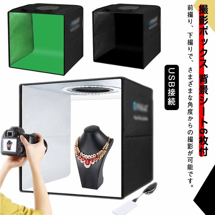 撮影キット 撮影ボックス LEDライト付折りた...