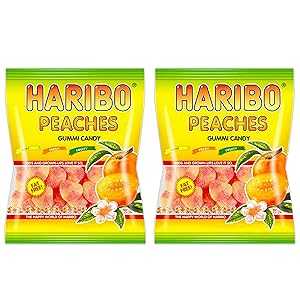 Haribo Peaches Gummi Candy 4 oz bag (2 bags 8 oz total)