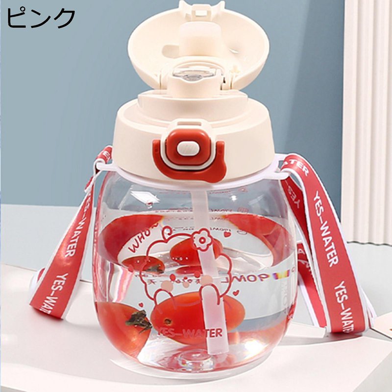 透明ボトル ストロー付き水筒 950ml コップ 給...