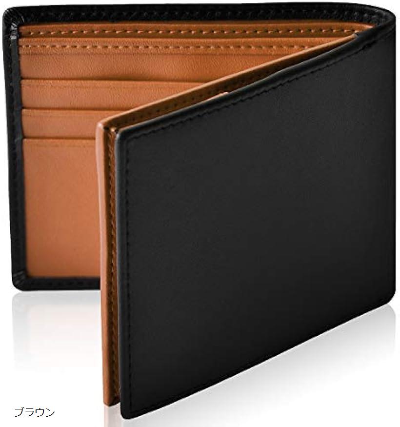 スリム 二つ折り本革財布 メンズ ブラック ...