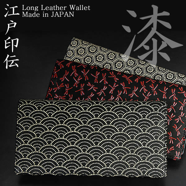 【江戸印伝】 日本製 二つ折り 長財布 本革...