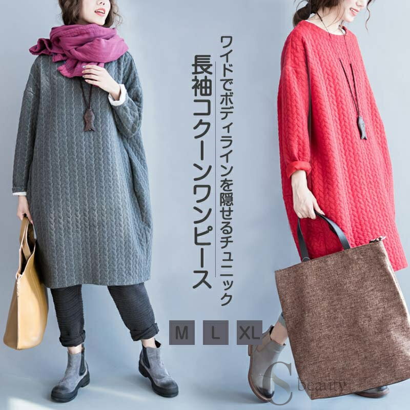 チュニック 秋冬 ワンピース 長袖 レディー...