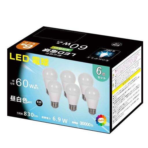 LED電球E26口金6.9W60W形相当昼白色5000K830lm広配...